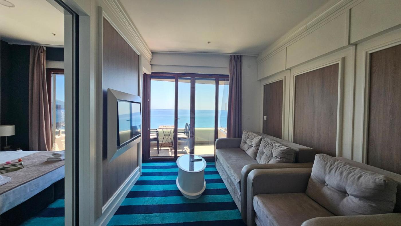 Superior Suite with Sea View. This suite comes with 1 living room, 1 separate bedroom and 1 bathroom with a shower and free toiletries. The well-equipped kitchen has a stovetop, a refrigerator, kitchenware and an electric kettle. The air-conditioned suite features a flat-screen TV, a washing machine, soundproof walls, a seating area as well as sea views. The unit has 3 beds.