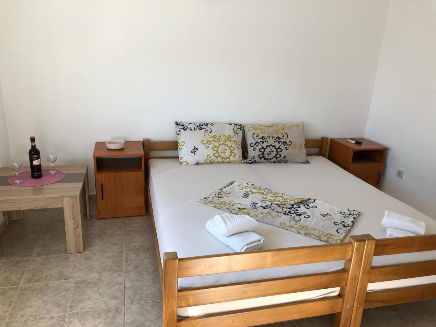 Studio Apartment. Featuring a private entrance, this air-conditioned apartment consists of 1 bedroom and 1 bathroom with a shower. Guests will find a stovetop, a refrigerator, kitchenware and a tea and coffee maker in the kitchenette. The apartment also offers a barbecue. Boasting a terrace with sea views, this apartment also provides soundproof walls and a flat-screen TV with cable channels. The unit offers 3 beds. ;