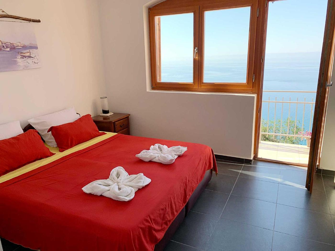 One-Bedroom Apartment. The air-conditioned apartment has 1 bedroom, 1 bathroom with a shower and a kitchen. The apartments kitchen is available for cooking and storing food. Boasting a balcony with sea views, this apartment also features a wardrobe and a flat-screen TV with cable channels. The unit has 2 beds. ;