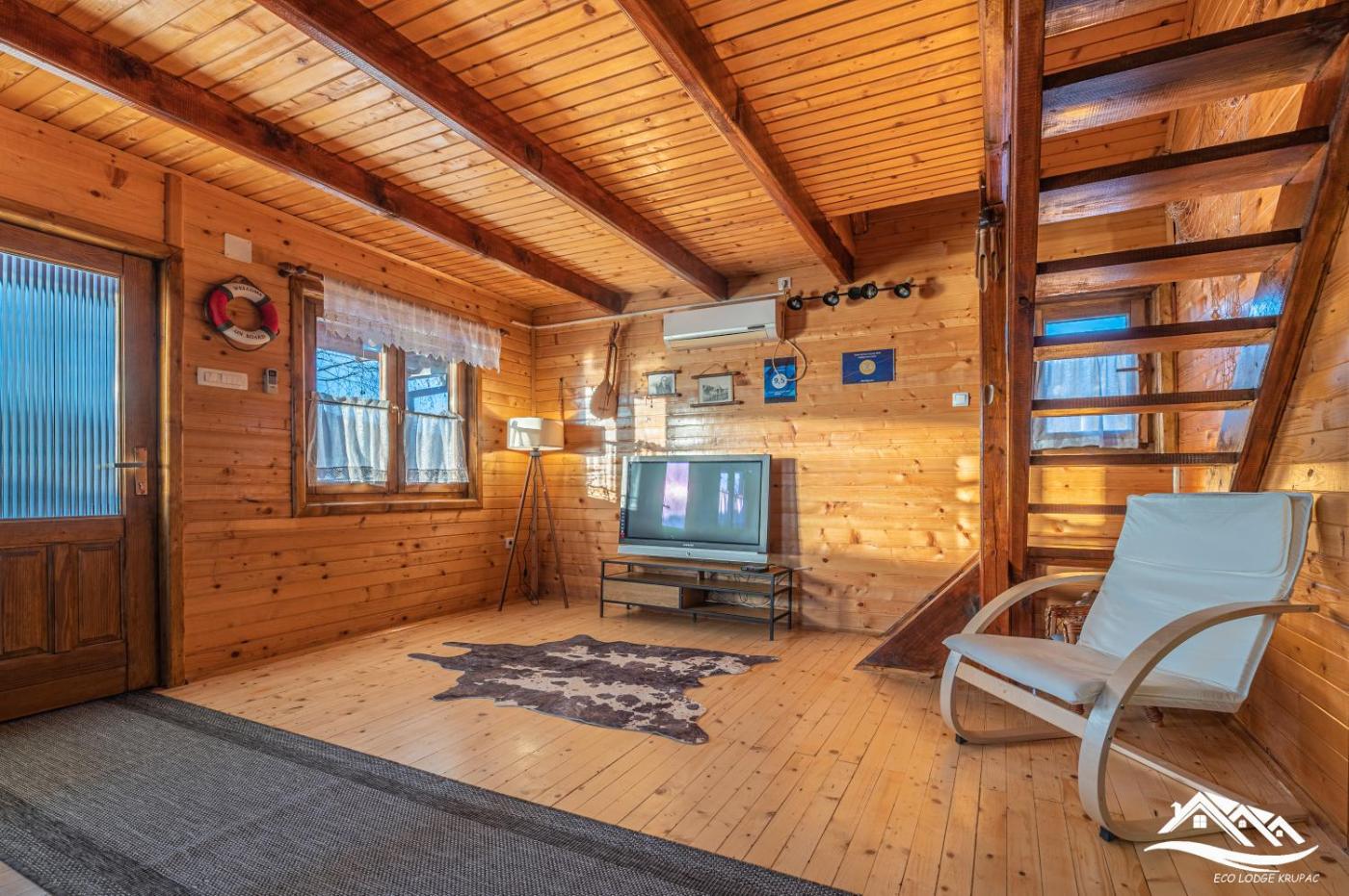 Two-Bedroom House. This holiday homes special features are the pool with a view and the fireplace. Featuring a private entrance, this air-conditioned holiday home consists of a kitchen, 2 bedrooms and 1 bathroom with a shower and a hairdryer. Guests will find a stovetop, a refrigerator, kitchenware and an oven in the fully equipped kitchen. The holiday home also offers a barbecue. Boasting a terrace with lake views, this holiday home also provides soundproof walls and a TV with cable channels. The unit offers 4 beds.