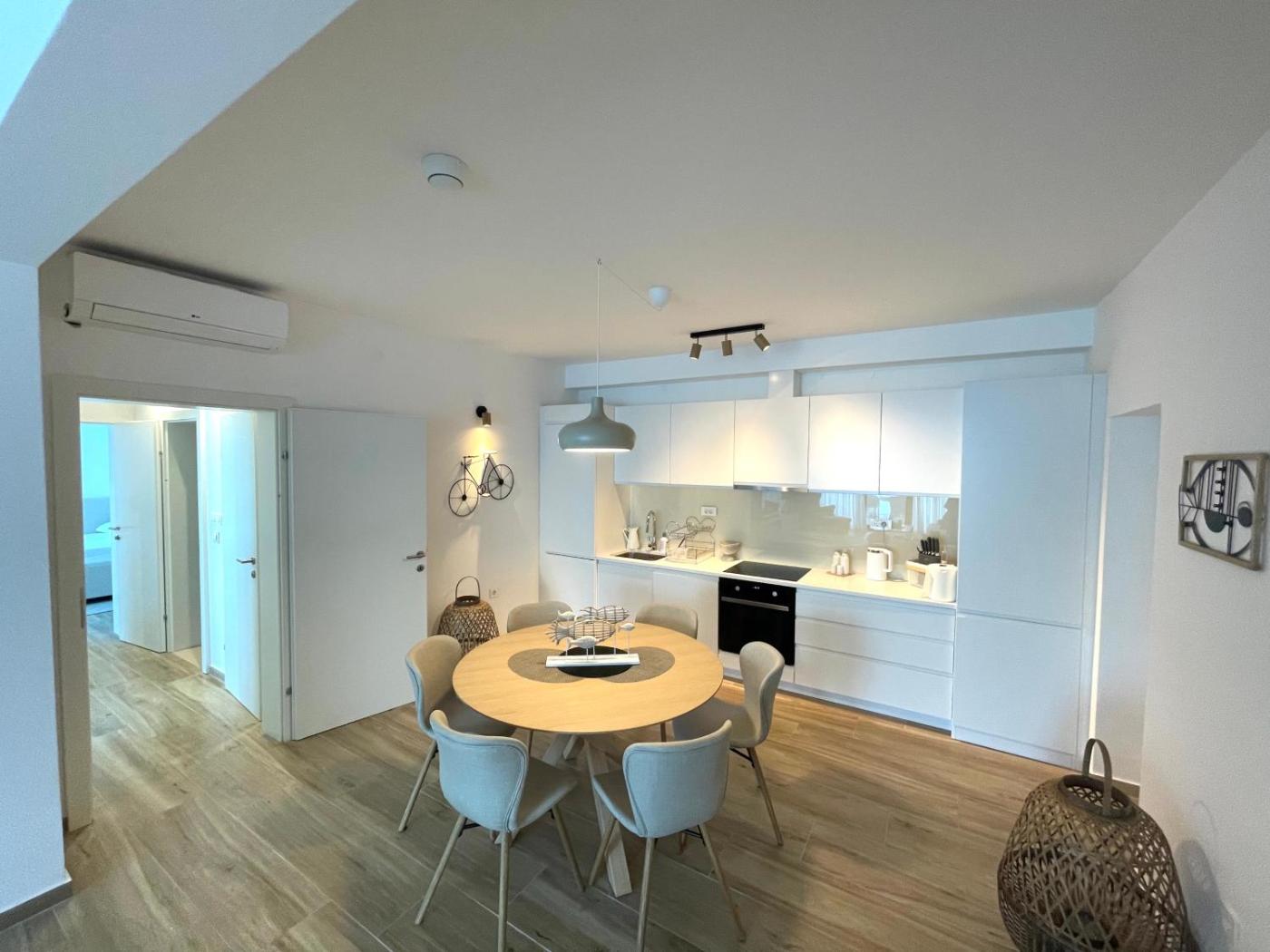 Apartment with Sea View. Boasting a private entrance, this air-conditioned apartment features 1 living room, 2 separate bedrooms and 1 bathroom with a walk-in shower and a bath. In the kitchen, guests will find a refrigerator, a dishwasher, kitchenware and an oven. The spacious apartment features a washing machine, soundproof walls, a tea and coffee maker, a flat-screen TV with streaming services, as well as sea views. The unit has 3 beds.