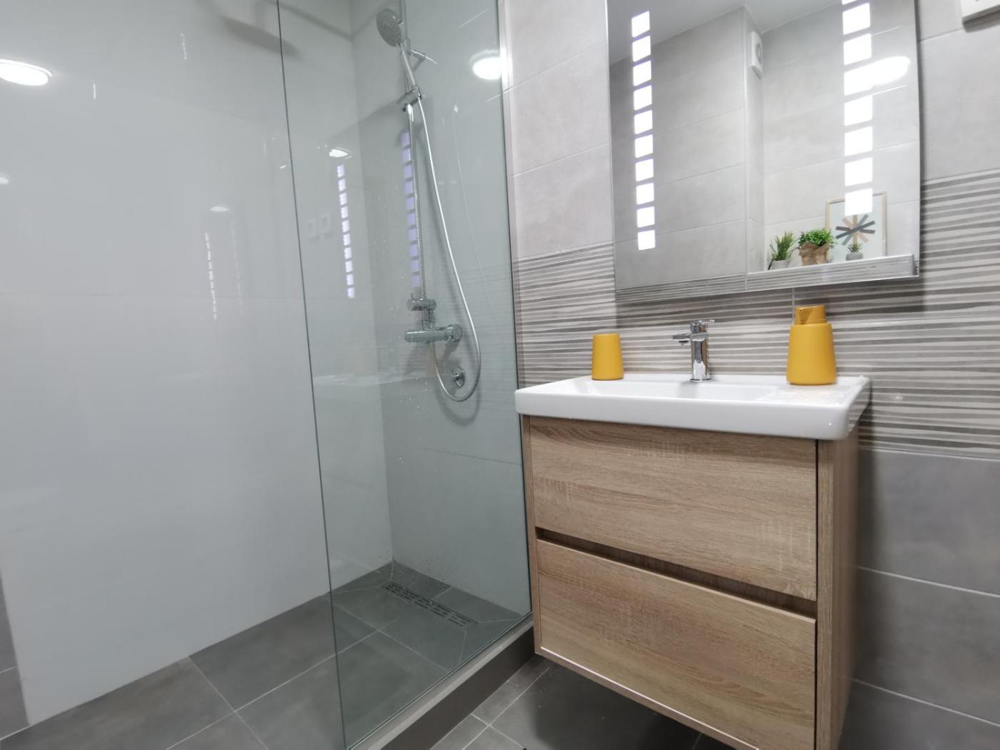 One-Bedroom Apartment. Featuring a private entrance, this air-conditioned apartment is comprised of a kitchen, 1 bedroom and 1 bathroom with a shower and a hairdryer. Meals can be prepared in the well-fitted kitchen, which comes with a stovetop, a refrigerator, a dishwasher and an oven. Boasting a balcony with mountain views, this apartment also offers a washing machine and a flat-screen TV. The unit offers 1 bed.