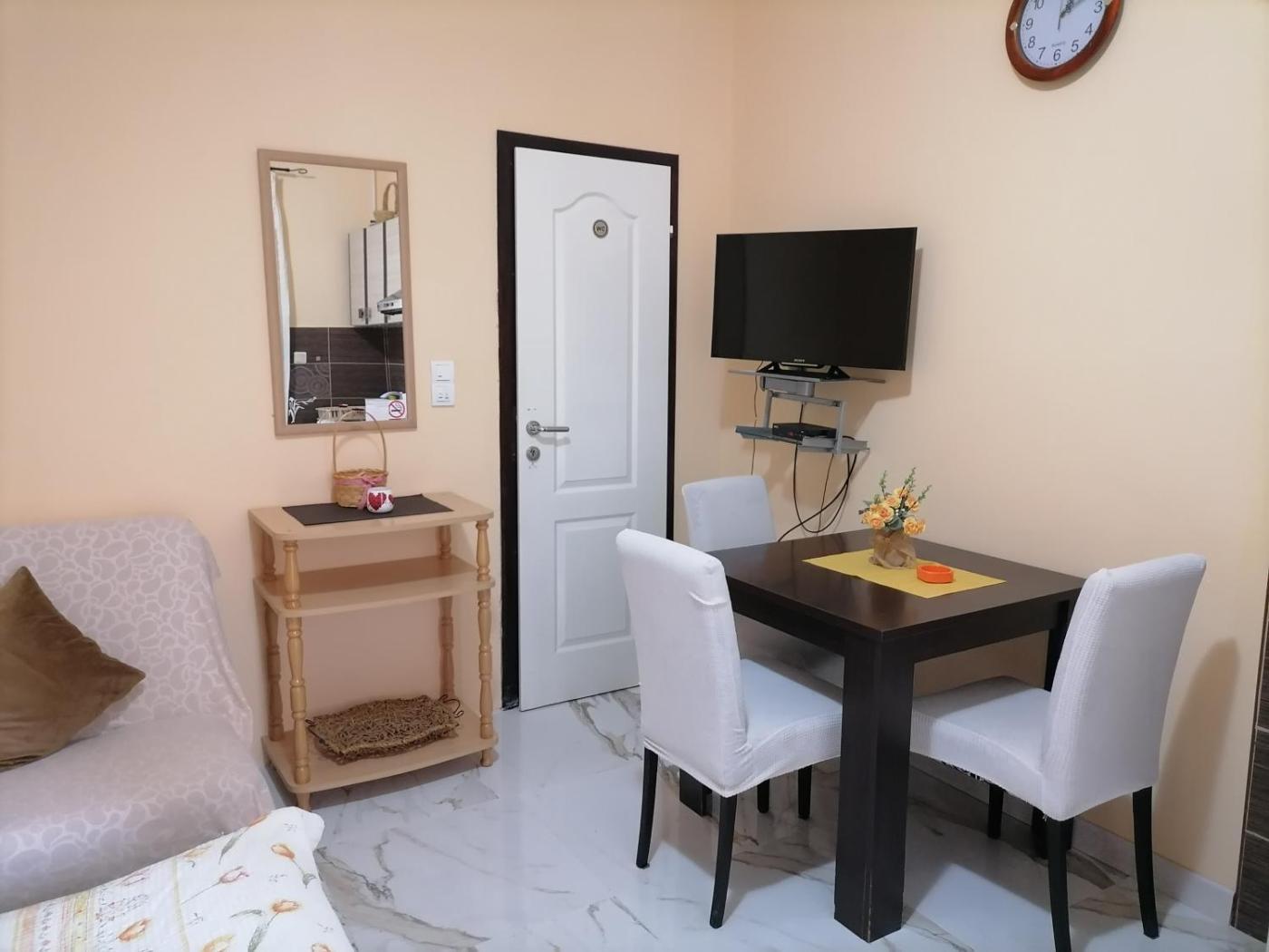 Studio Apartment. Featuring a private entrance, this air-conditioned apartment consists of a kitchenette, 1 bedroom and 1 bathroom with a shower and a hairdryer. Guests can make meals in the kitchenette that is equipped with a stovetop, a refrigerator, kitchenware and an electric kettle. Boasting a terrace with garden views, this apartment also provides a seating area and a flat-screen TV with cable channels. The unit offers 2 beds.