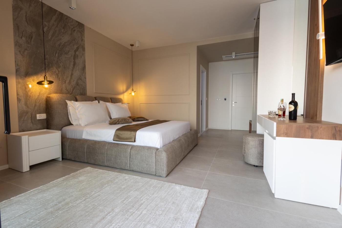 Set in Ulcinj, a few steps from Mala Ulcinjska Beach and 29 km from Port of Bar, Emaar offers spacious air-conditioned accommodation with a balcony and free WiFi. Located on the beachfront, this property has a terrace and a bar. The accommodation provides a 24-hour front desk, full-day security and currency exchange for guests.